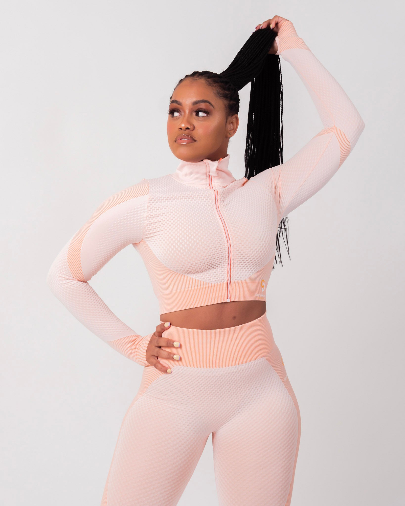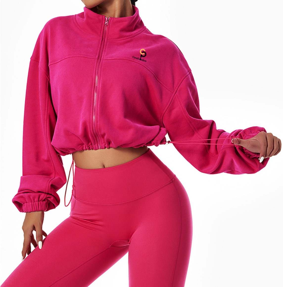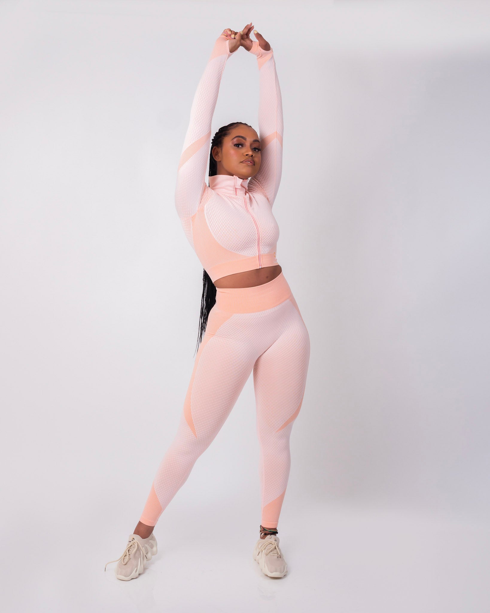 Pink Salt Bra Long Sleeves Top Leggings Set