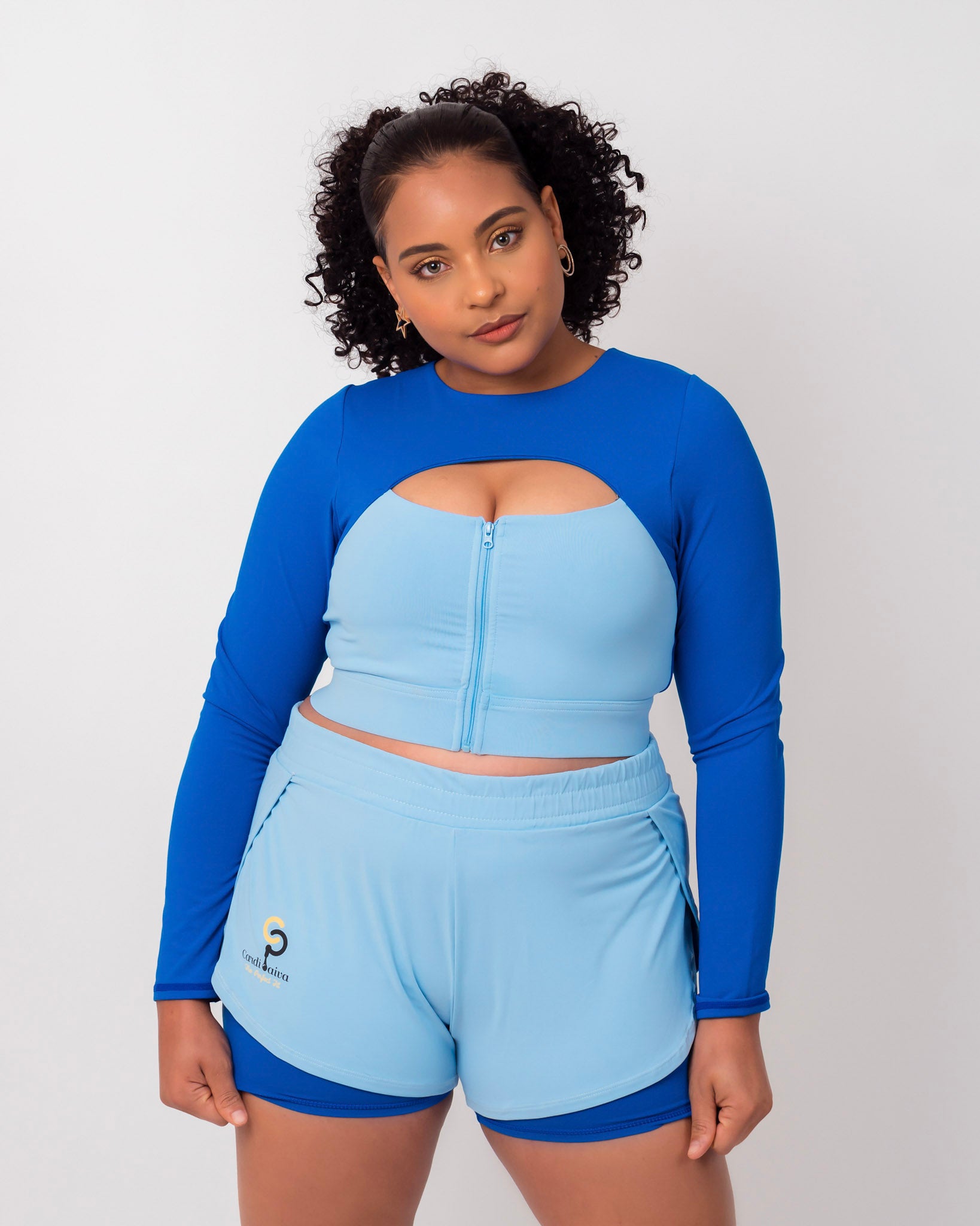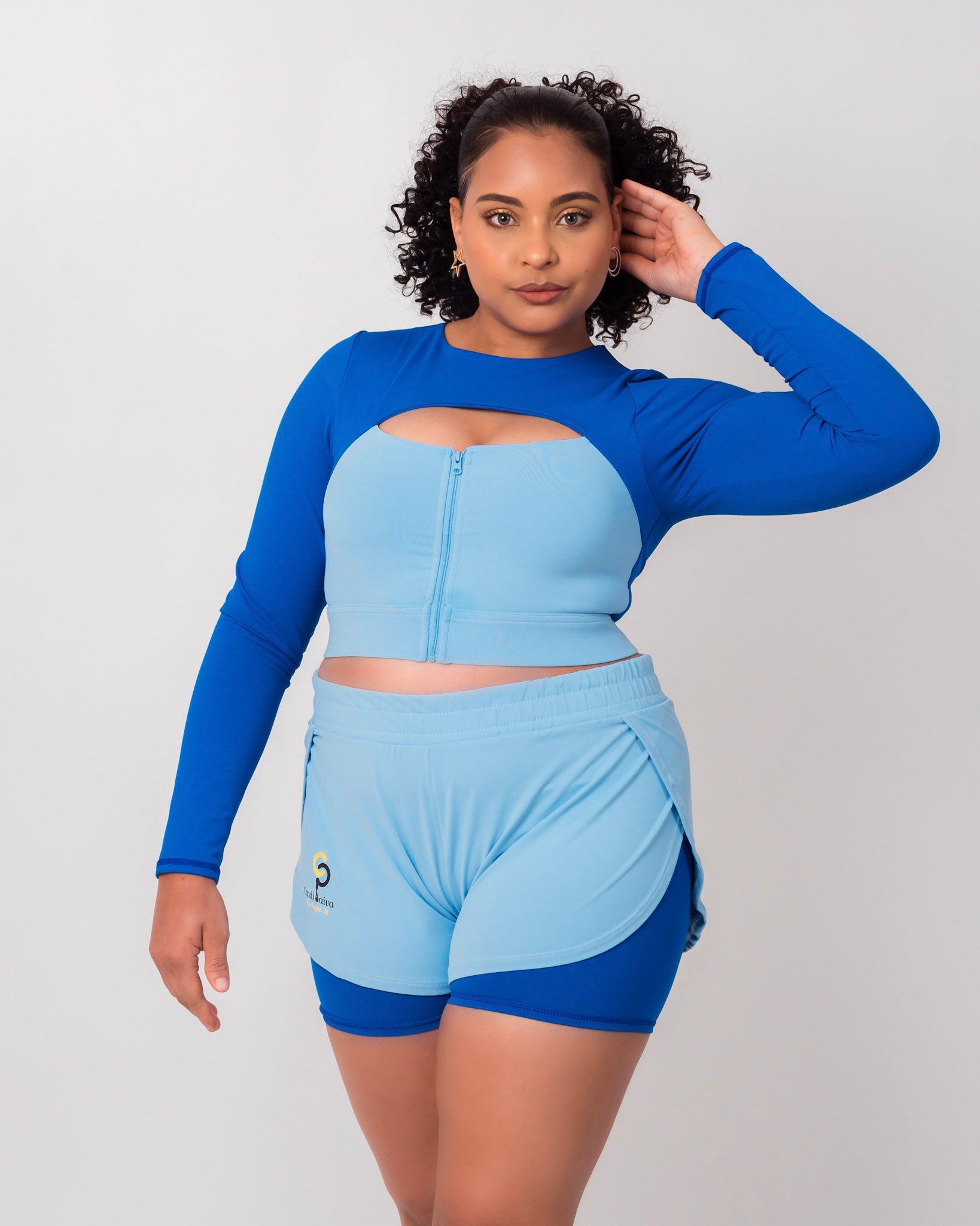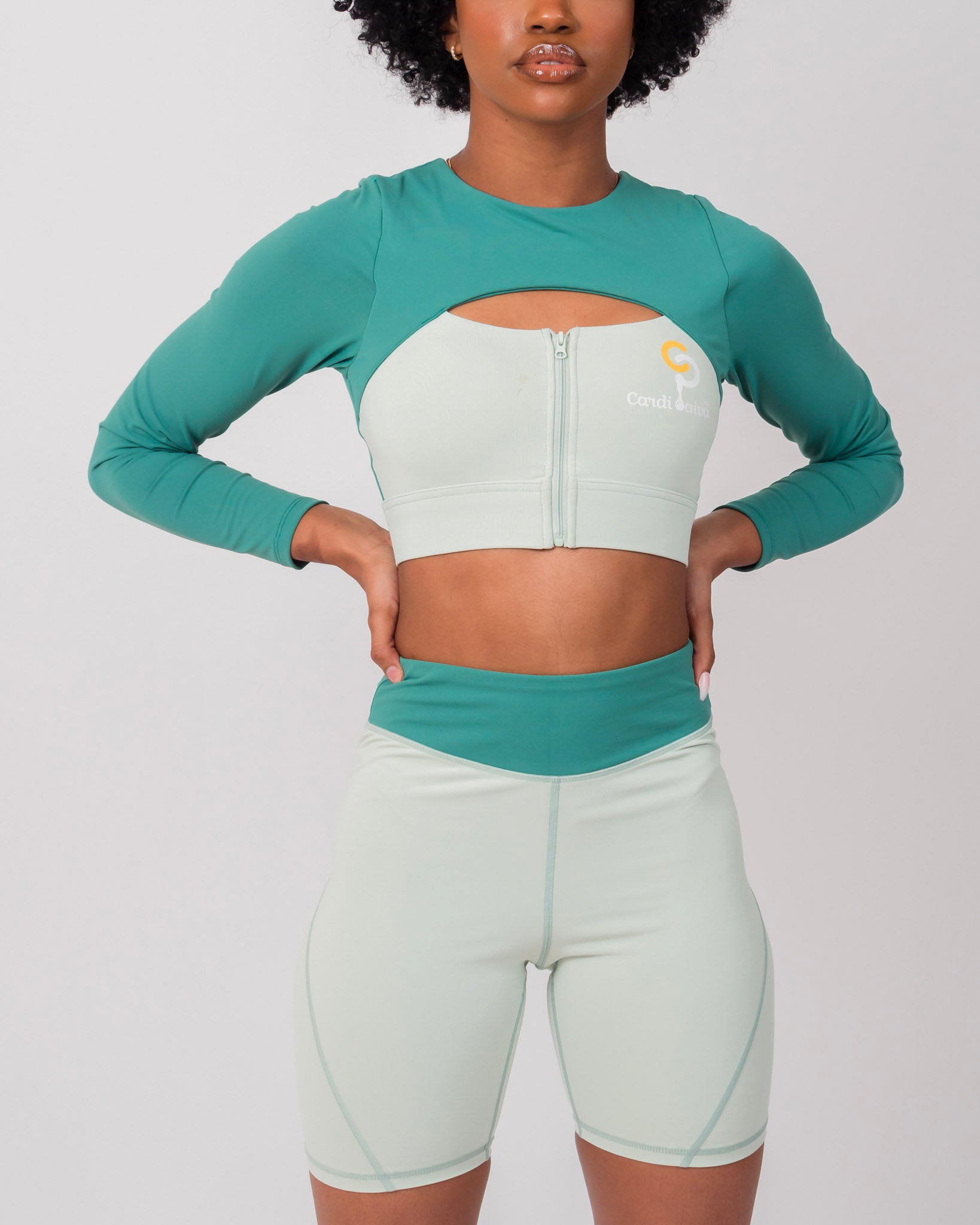Shorts and long sleeve crop top set