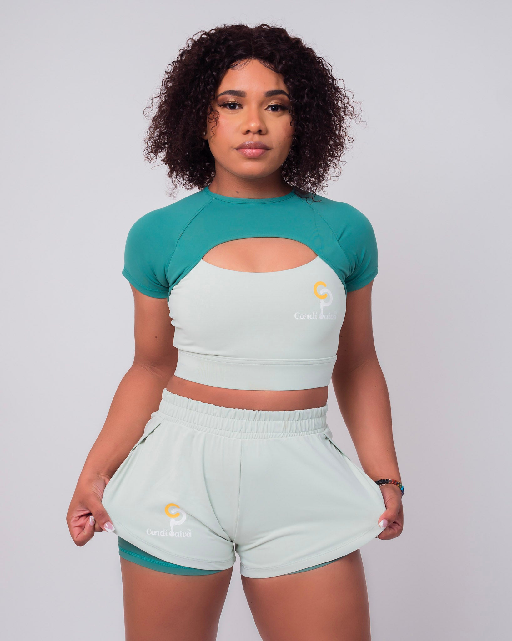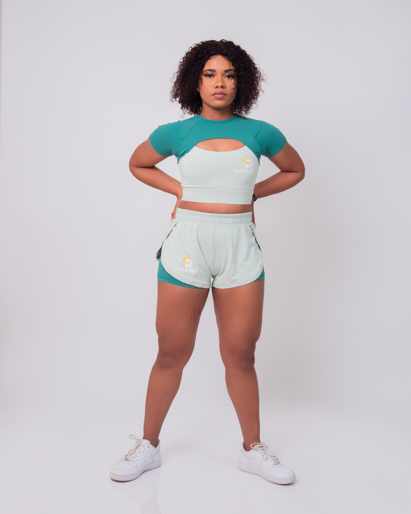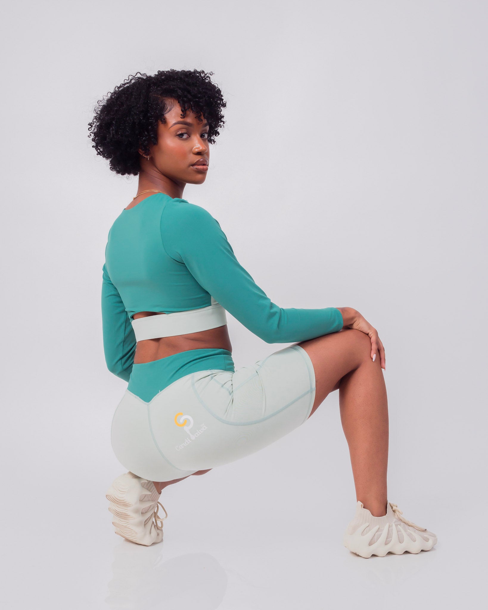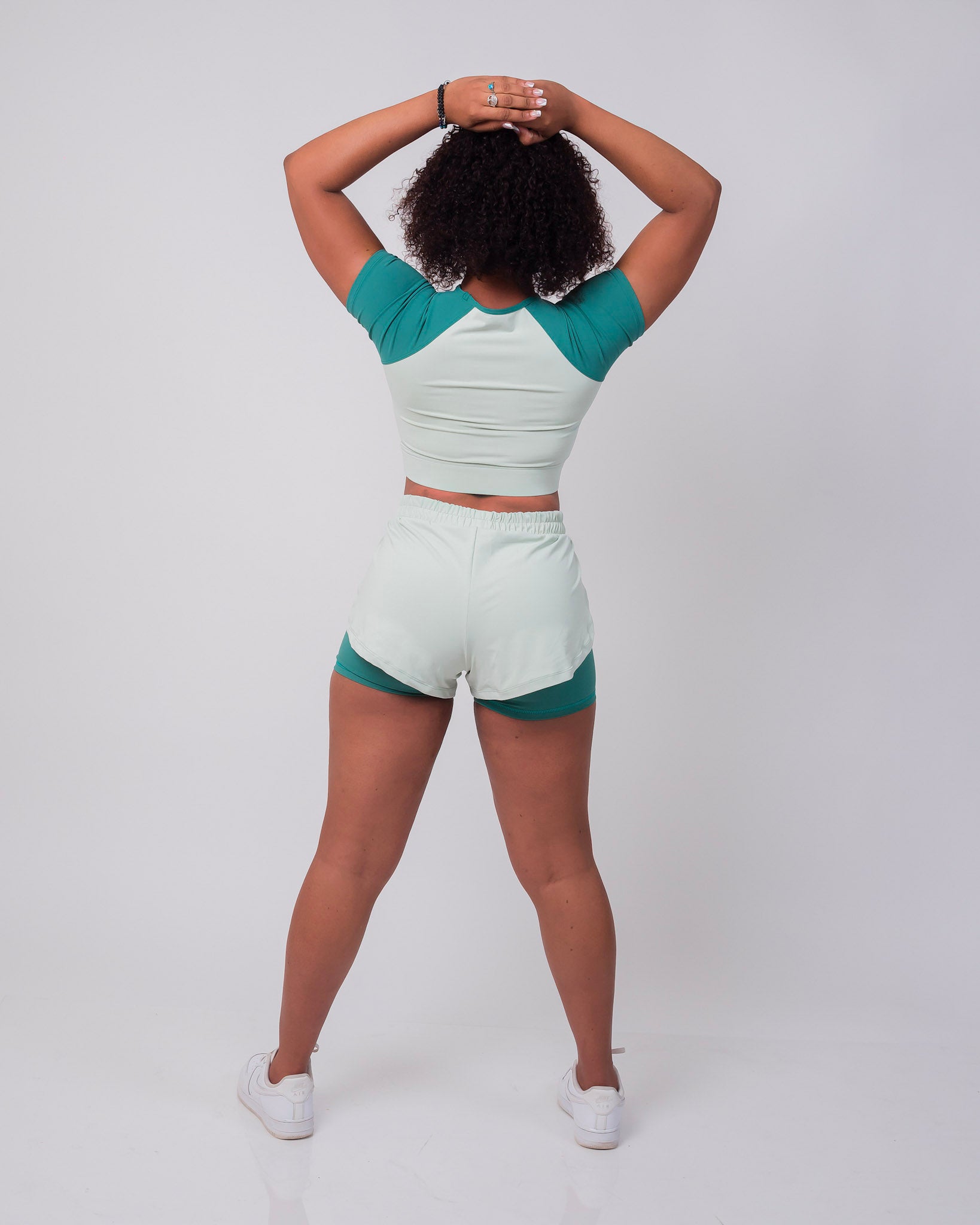 Shorts and long sleeve crop top set