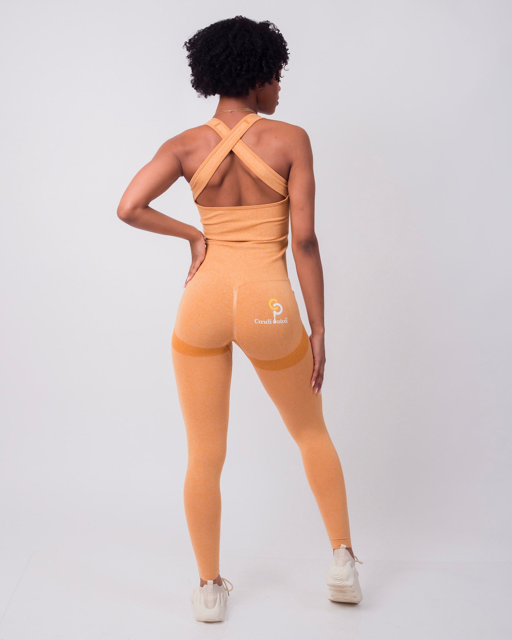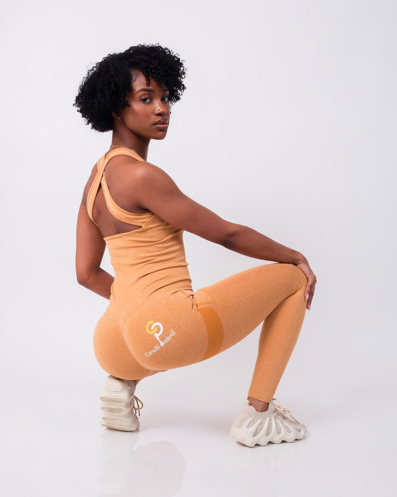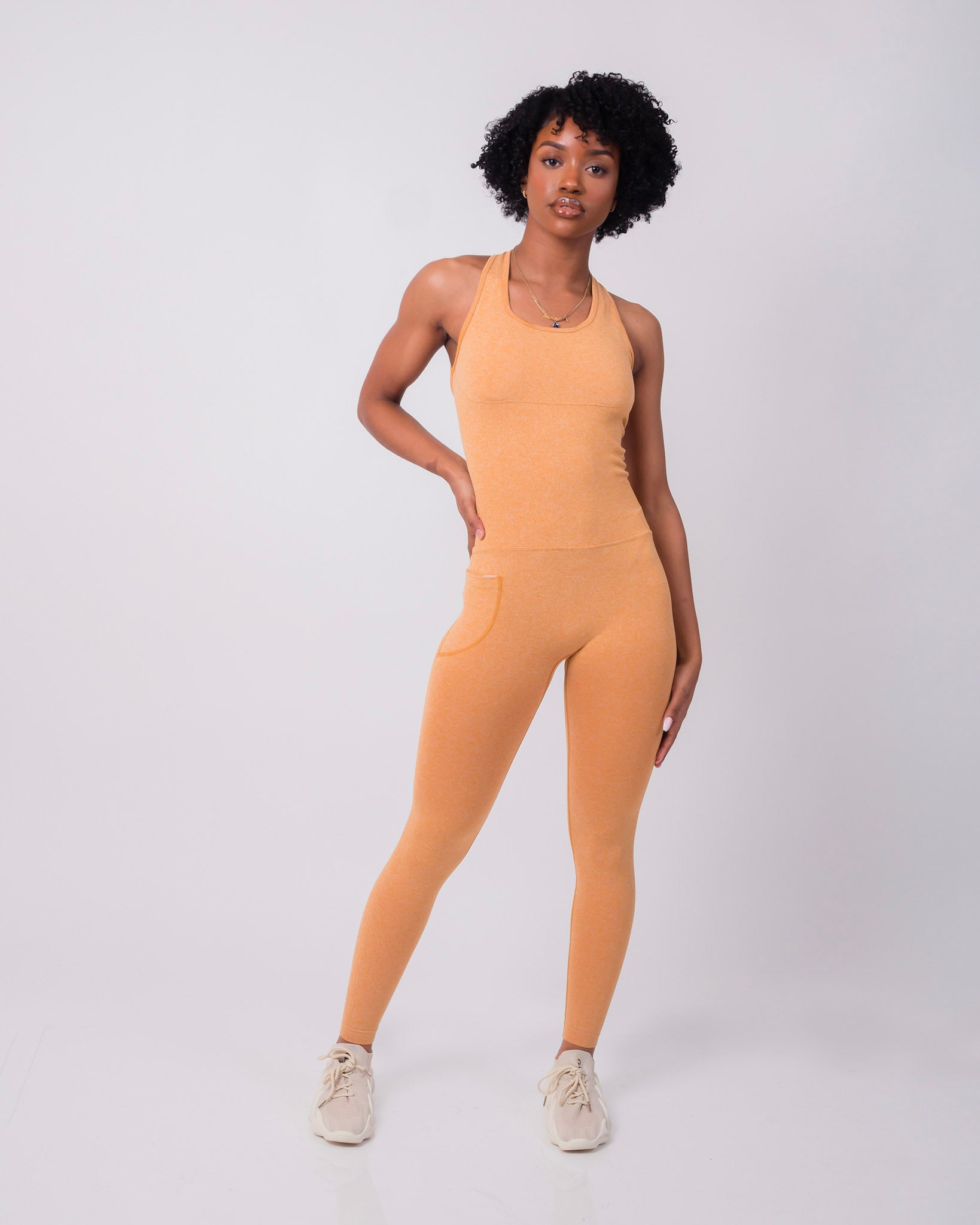 Sexy Peach Hip Pocket Yoga Bodysuit